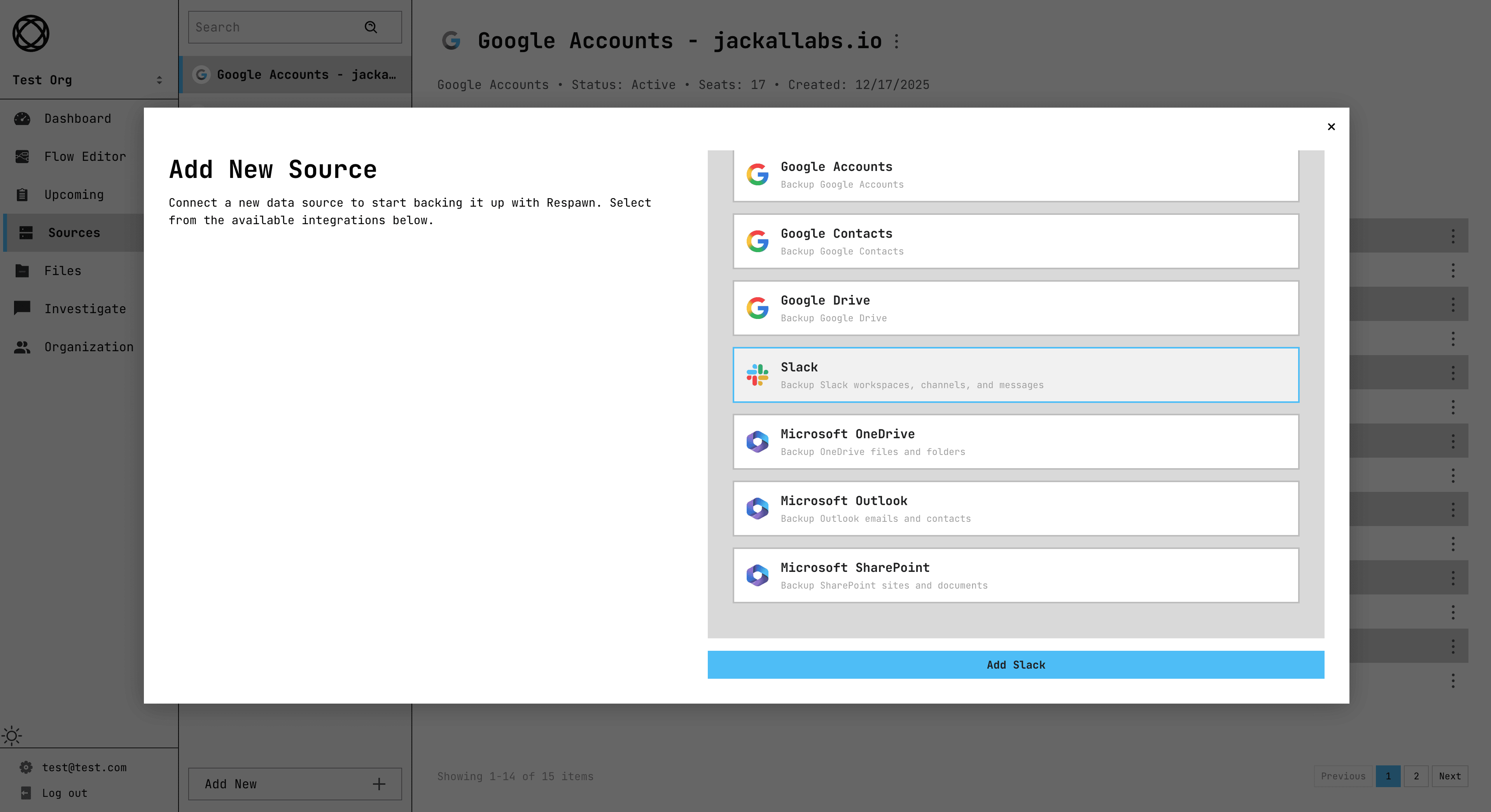 Respawn connects directly to the systems you rely on every day. SaaS, cloud, and private cloud.
