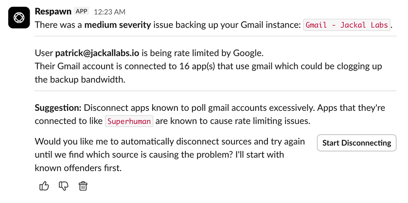 Backups break for boring reasons. Respawn is built for this reality. It proves availability and integrity, retries intelligently, surfaces what's blocking progress, and works with Respawn AI to diagnose and fix issues fast.